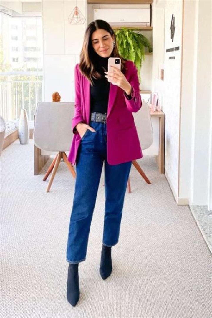 • A fuchsia blazer outfit can be dressed up or down depending on the occasion.