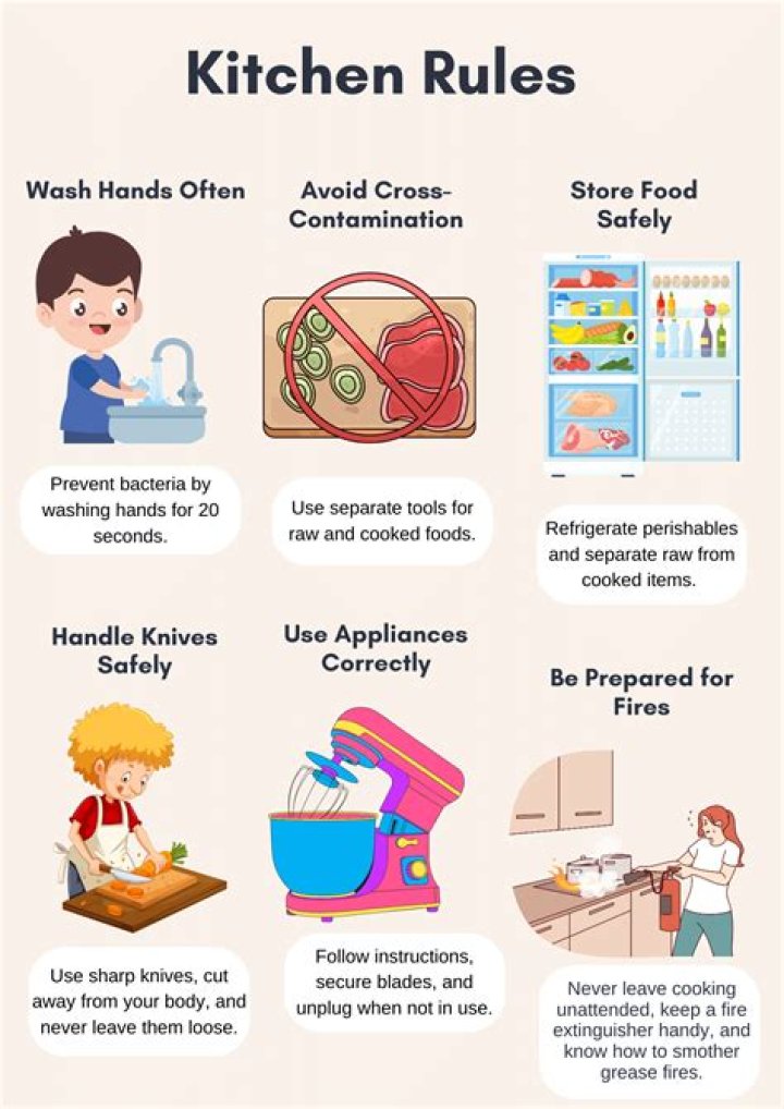 Washing hands before handling foodStoring food properlyAvoiding cross-contaminationSummary: Link facets back to the main theme of "cooking safety pictures" or expand the discussion.
