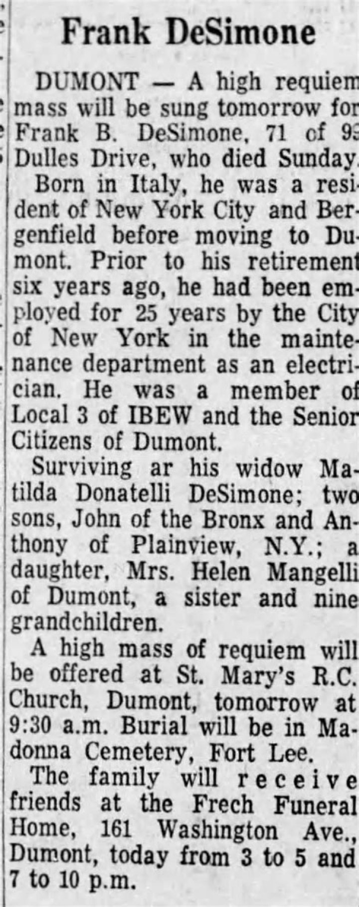 FAQs about "frank desimone obituary"
